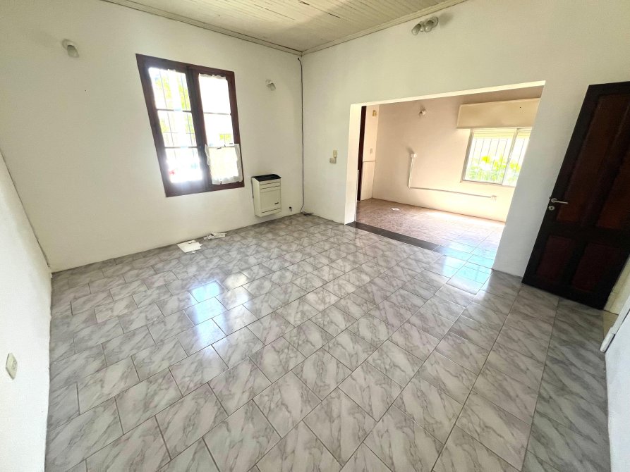 Construida sobre un terreno de 221 m², ofrece cocina-comedor integrada, living al frente, tres dormitorios y baño completo.